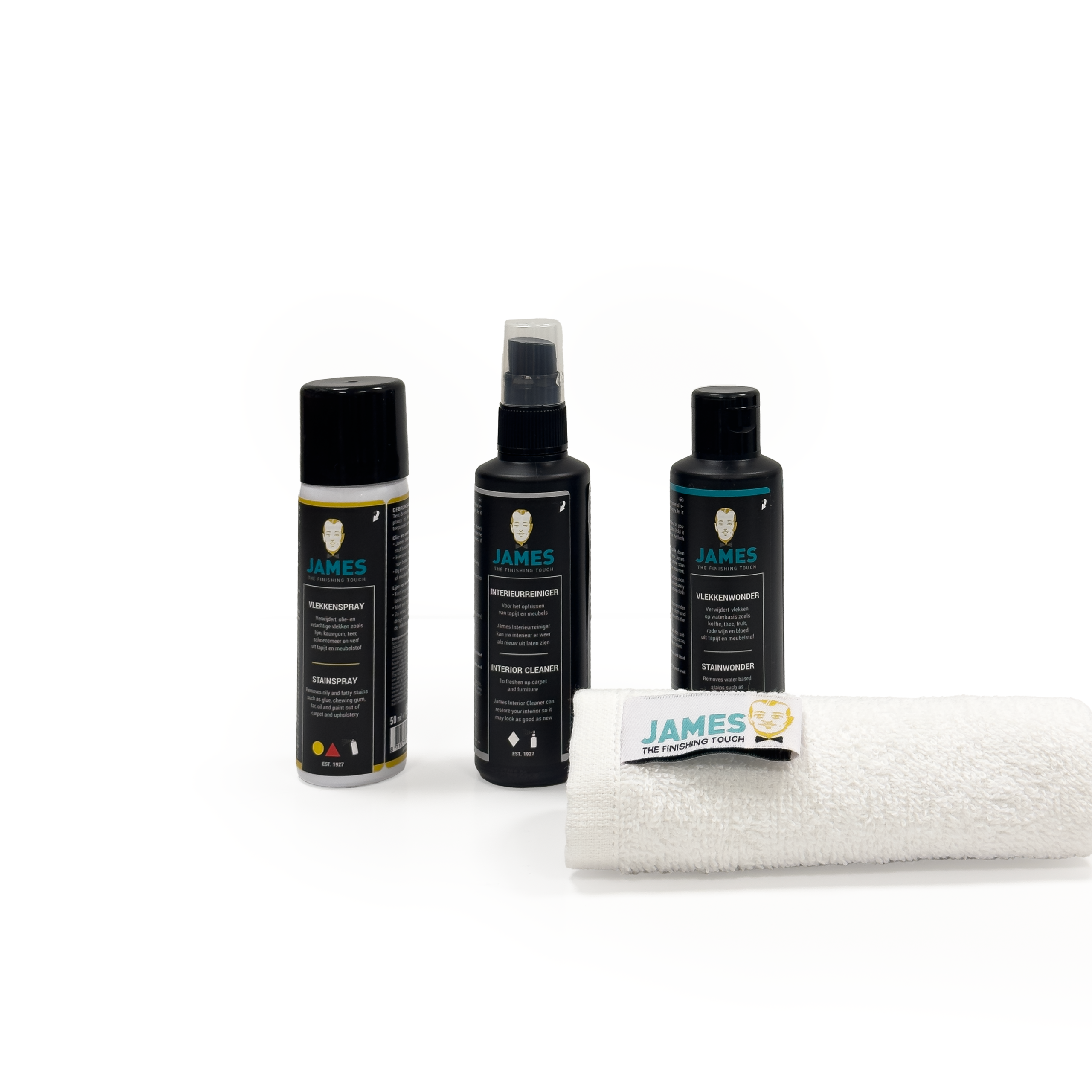 Starterset stofonderhoud: eerste Hulp bij vlekken en voor onderhoud van meubelstoffen. Deze set bevat een kleinformaat Vlekkenspray (50 ml), Vlekkenwonder (100 ml) en Interieurreiniger (100 ml).